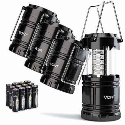 Vont 4 Pack LED Camping Lantern, LED Lanterns, Suitable Survival Kits for Hurricane, Emergency Light for Storm, Outages, Outdoor Portable Lanterns, Black, Collapsible, (Batteries Included) £19.99